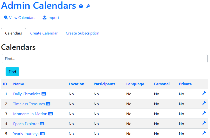Click on "Admin > Calendar" to go to Calendar Admin (tiki-admin_calendars.php).