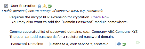 User Encryption enables secure storage of such external log-in credentials. The decryption key is not stored by Tiki, and it is only available when the user is logged in.